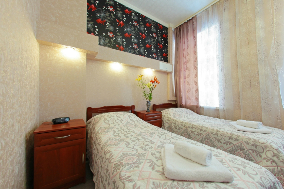 В номере: две раздельные кровати, шкаф, тумбочки, комод, стол, стулья, телевизор LCD, бесплатный Wi-Fi. В ванной комнате: душ, раковина, туалет, набор косметики, фен. Площадь номера составляет 20-22 кв.м.